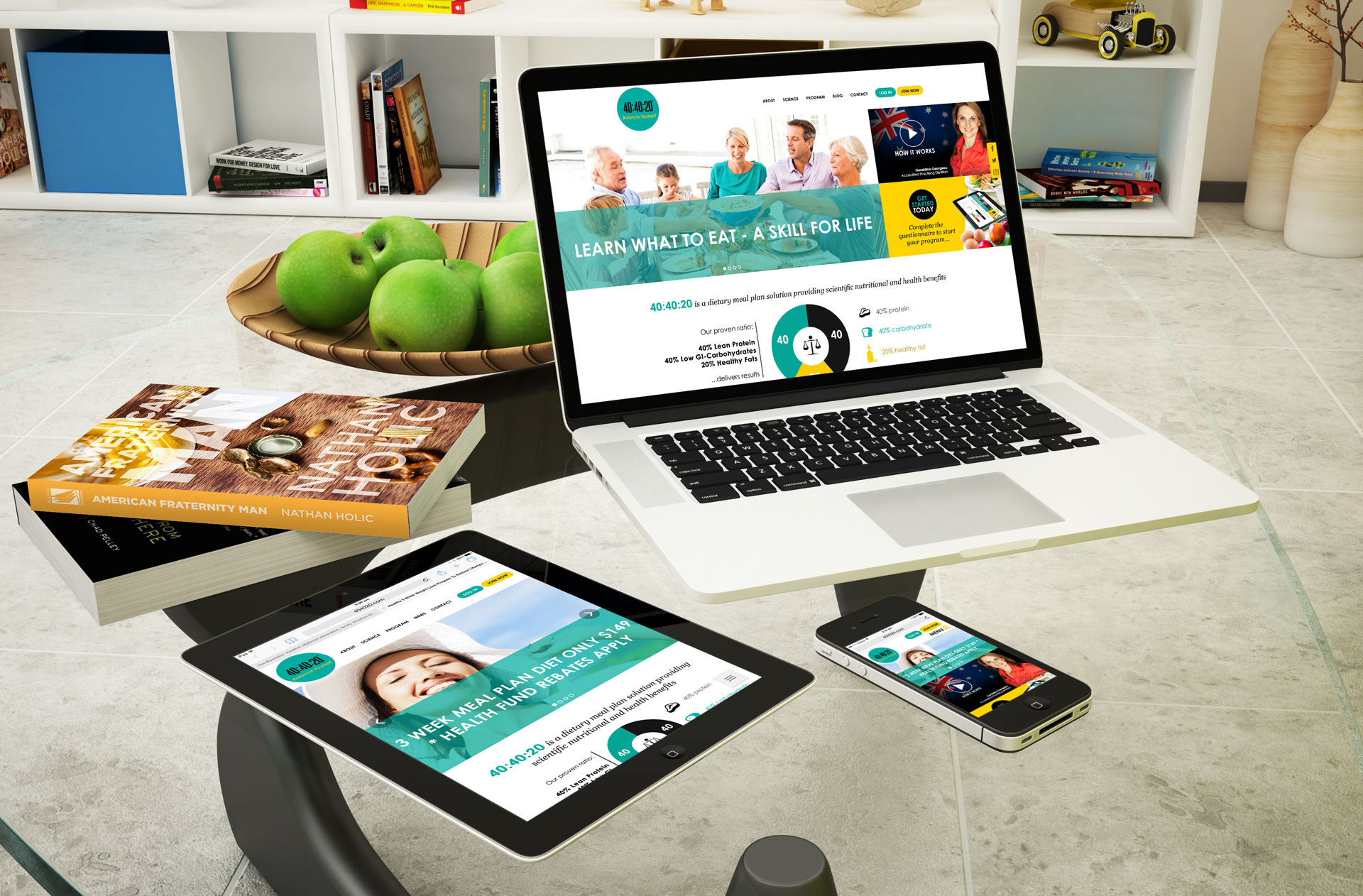 40:40:20 is an online dietary meal plan solution providing scientific nutritional and health benefits. Miles Design in collaboration with Unity Management Sydney custom designed and developed a responsive website. Features include: pre-qualify questionnaire and interactive BMI calculator, ecommerce payment, member's only secure area, weigh-in and results (metric and imperial), auto-triggered emails based on start date, and integrated blog.